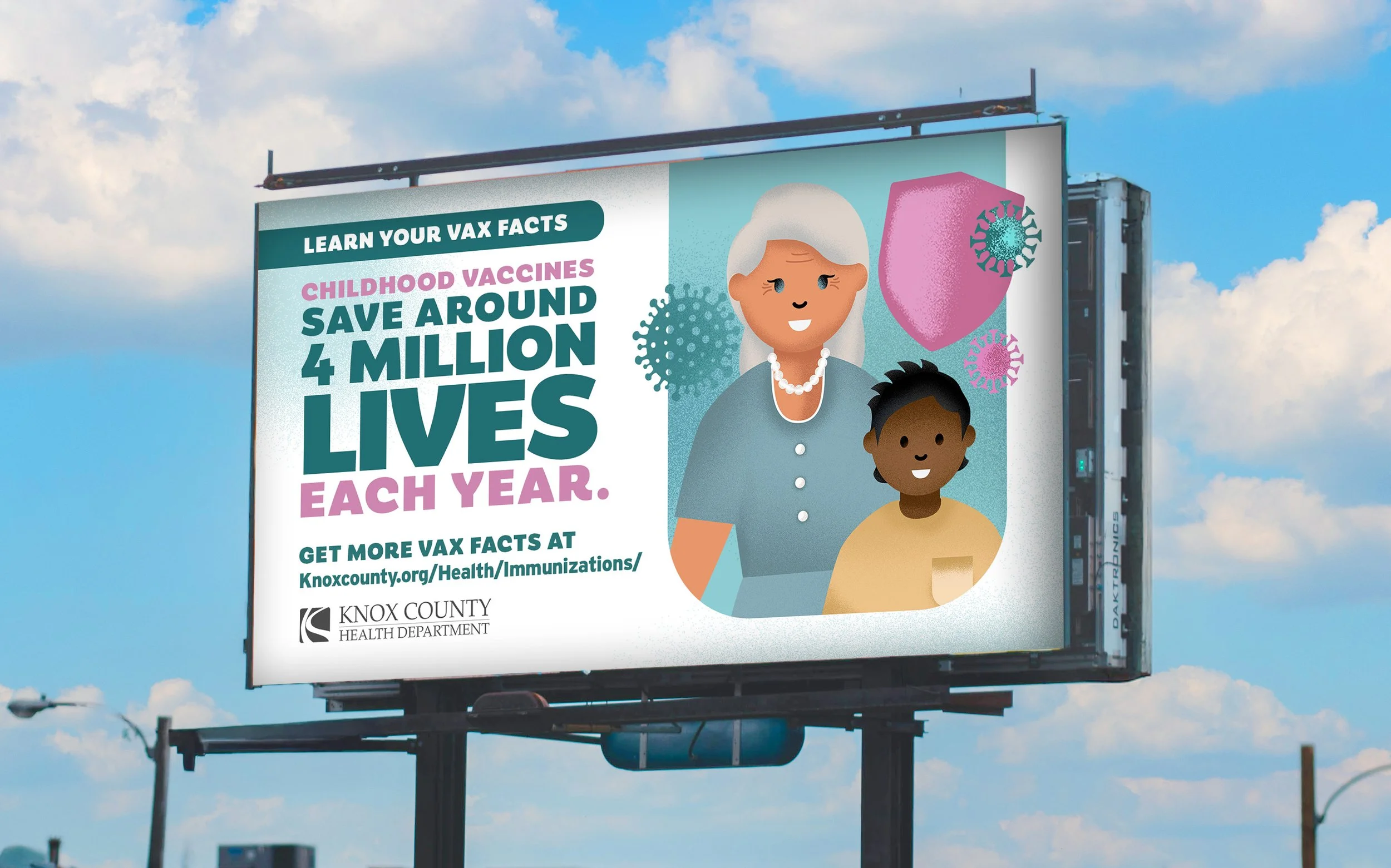 The Knox County Health Department came to us with the hope of increasing vaccine awareness in Knox County and hopefully increasing vaccinations across the county. We created a series of animated videos using illustrated characters to help stop the spread of misinformation and then used those characters with static ads to increase the reach of the campaign.
